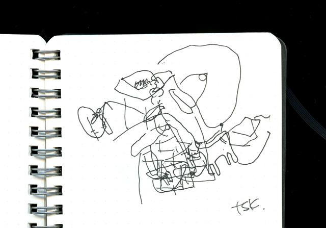 目をつぶって描いたサンタクロースがえんとつに入るところ