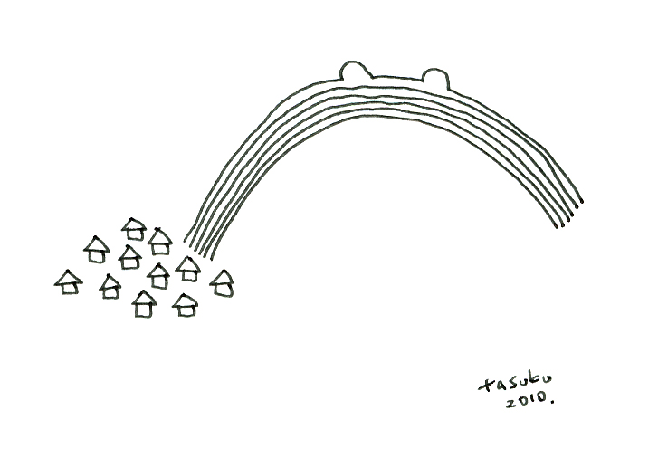 町から虹、虹に耳